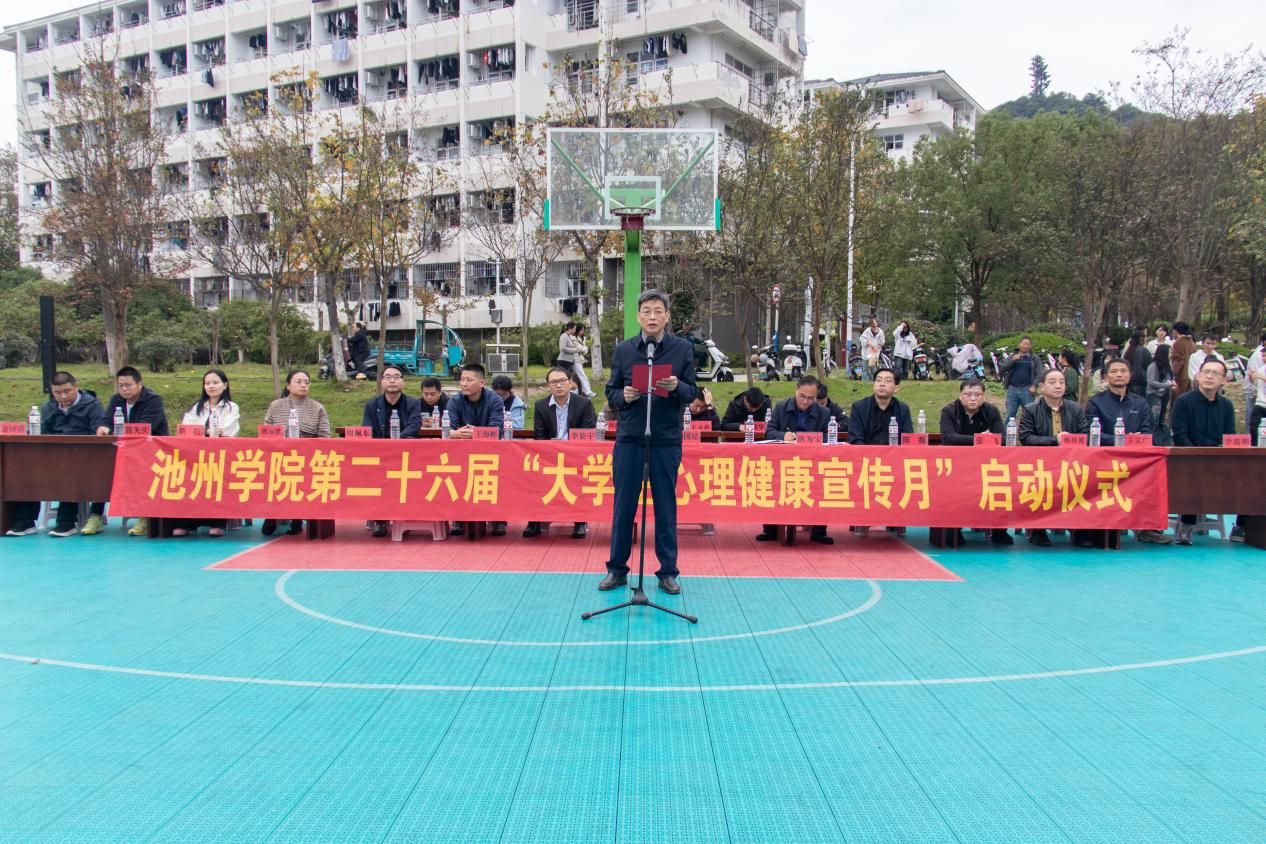 11月5日下午,池州学院第二十六届大学生心理健康宣传月启动仪式在一食堂西篮球场顺利举行。校党委副书记盛国星出席启动仪式并讲话。