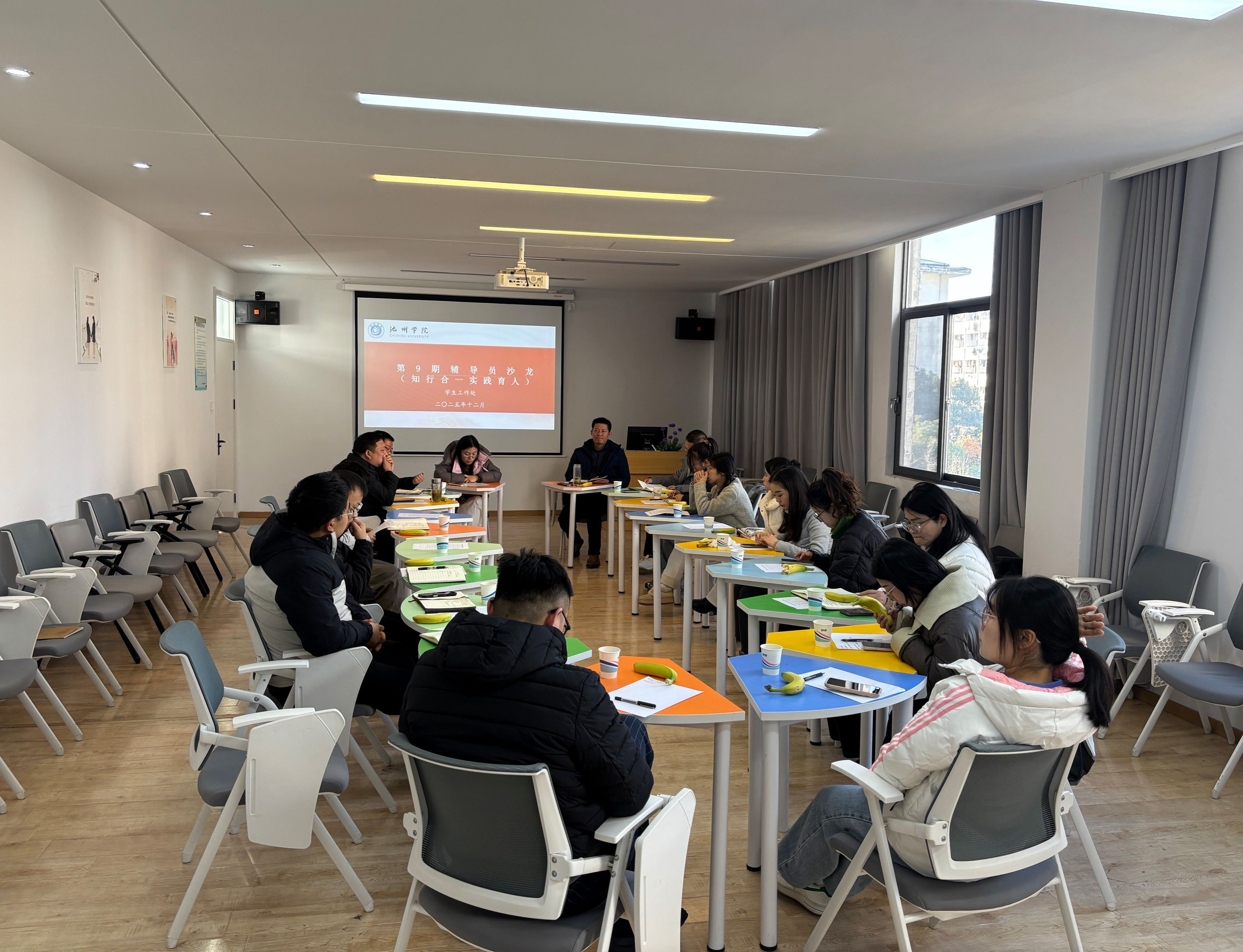 为进一步加强辅导员队伍建设,凝聚实践育人共识,破解工作堵点难点,提升育人工作实效,12月26日下午,池州学院第9期辅导员沙龙在大学生活动中心4楼团辅室顺利举行。