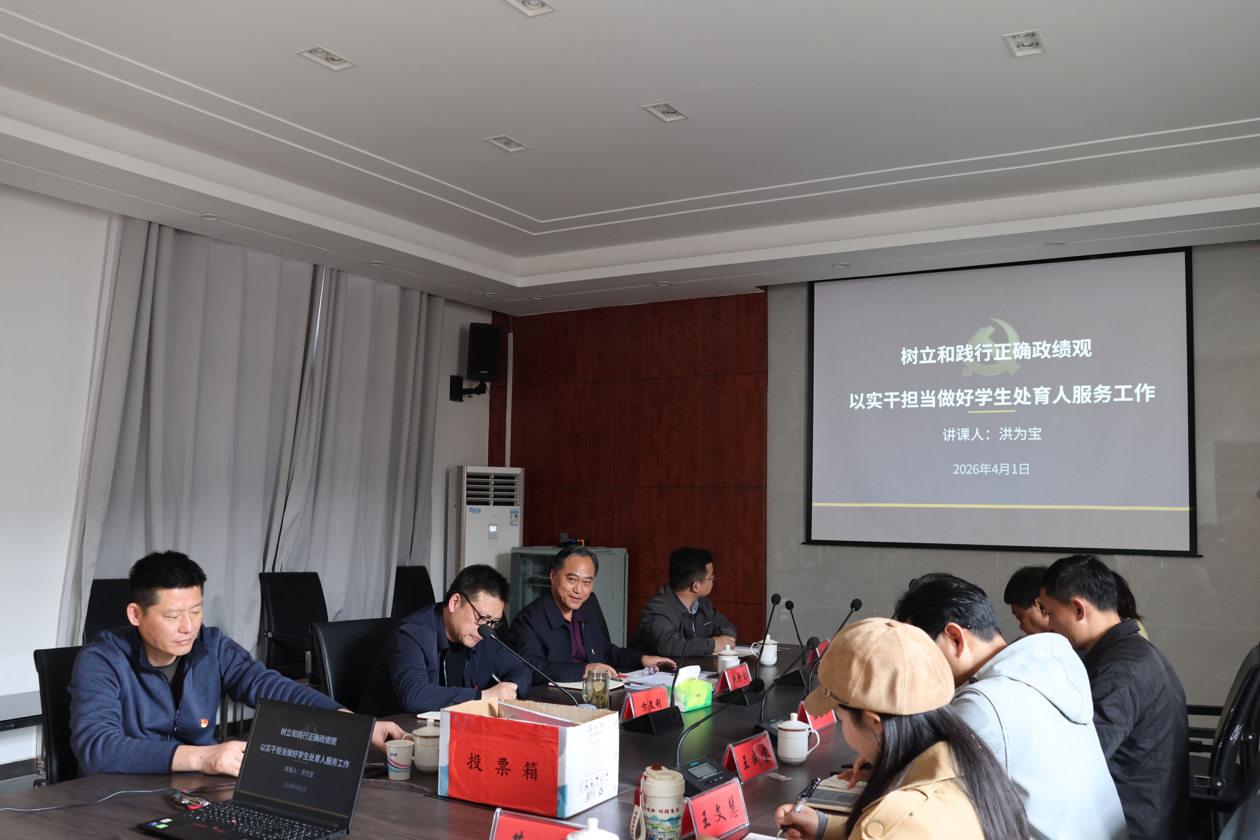 4月1日,学生处党支部在易班会议室召开专题党课,党支部书记洪为宝以“树立和践行正确政绩观”为主题,为全体党员讲授专题党课,推动学习教育走深走实、入脑入心。